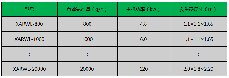 有效氯产量:0.8~20kg/h·Cl(规格可选)