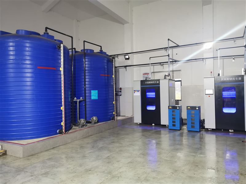 次氯酸钠可以采用投加成品和现场制备两种,成品次氯酸钠不能保存长久,需要定期购买;电解次氯酸钠采用食盐为原料,原料采购方便,制取的次氯酸钠溶液为7-9g/L,浓度低,可以*在水中电离,消毒效果好,设备采用全自动控制,操作方便.