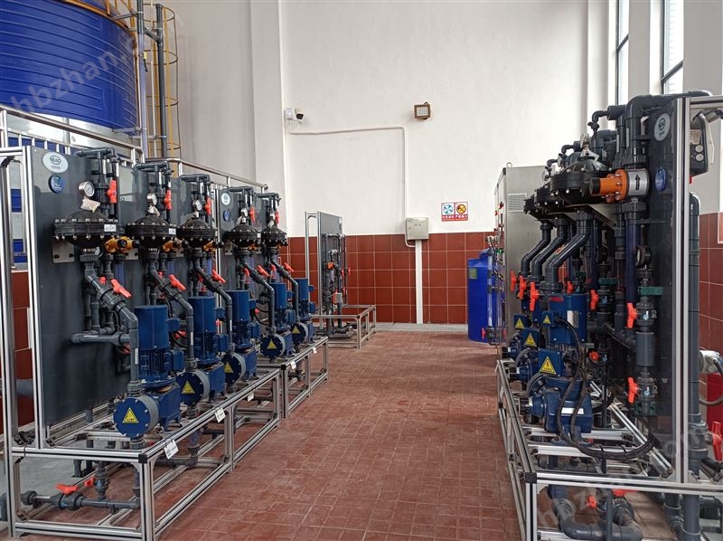 次氯酸钠发生器投加间可以采用投加成品和现场制备两种,成品次氯酸钠不能保存长久,需要定期购买;电解次氯酸钠采用食盐为原料,原料采购方便,制取的次氯酸钠溶液为7-9g/L,浓度低,可以*在水中电离,消毒效果好,设备采用全自动控制,操作方便。
