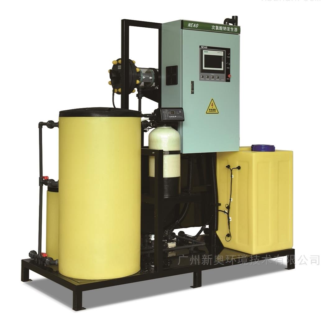 次氯酸钠可以采用投加成品和现场制备两种,成品次氯酸钠不能保存长久,需要定期购买;电解次氯酸钠采用食盐为原料,原料采购方便,制取的次氯酸钠溶液为7-9g/L,浓度低,可以*在水中电离,消毒效果好,设备采用全自动控制,操作方便.